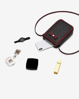 Túi hộp đứng mini xin xắn với thiết kế trẻ trung, phần viền da đỏ và nơ da đỏ quyến rũ thanh lịch. Túi đủ rộng để chứa điện thoại, vật phẩm căn bản cho các nàng. Quai da cố định có thể tăng đơ thay đổi độ dài của dây tùy theo trang phục.