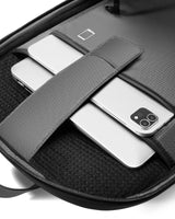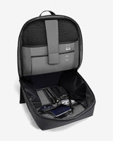 Mẫu balo đeo vai hướng đến thiết kế tinh tế, tối giản mà vẫn giữ được nét hiện đại, tối ưu tiện lợi cho người sử dụng. Các ngăn chứa được sắp xếp một cách khoa học để bảo vệ các đồ dùng điện tử hoặc vật dụng cá nhân khi di chuyển một cách tuyệt đối. Chẳng hạn như ngăn chứa máy tính bảng và laptop được tách riêng, bên trong có lớp điệm chống sốc cùng dây cài cố định. Ngăn lưới bố trí ngăn vừa đựng các vật dụng như chìa khóa, sổ tay,... và cả ngăn nhỏ dùng để kẹp viết hoặc dây sạc. Bên ngoài có thêm ngăn chứa bình nước có khóa kéo chắc chắn, phần quai đeo bản to mềm mại nâng đỡ khi mang kết hợp cùng khóa cố định tăng thêm phần chắc chắn khi di chuyển.