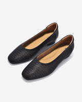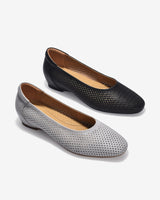 Tối giản mà tinh tế, mẫu giày búp bê nữ với thiết kế đan tỉ mỉ không chỉ mang lại vẻ đẹp nhẹ nhàng mà còn tạo cảm giác thoáng mát cho đôi chân. Chất liệu da mềm mại, ôm chân êm ái, lý tưởng cho cả ngày dài vận động. Phom dáng tròn cổ điển kết hợp phần gót da phối vân sang trọng, phù hợp với nhiều phong cách từ công sở đến dạo phố. Màu sắc trung tính – đen và xám – dễ dàng phối hợp cùng mọi trang phục.