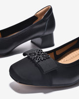 Giày Cao Gót Zuciani Da Phối Hoa Bông Tuyết - /