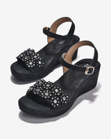 Giày sandal xuồng Zucia thiết kế đế xuồng chắc chắn, độ cao vừa phải nâng dáng mà vẫn êm ái khi di chuyển. Quai ngang đính đá nổi bật, tạo điểm nhấn tinh tế mà không quá phô trương. Phom sandal ôm chân gọn gàng, mang vào đem lại cảm giác thoải mái, dễ chịu. Chất liệu mềm mịn, dễ vệ sinh, phù hợp với nhiều hoàn cảnh từ đi làm, gặp gỡ bạn bè đến dạo phố cuối tuần.