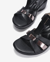 Giày sandal xuồng Zucia thiết kế quai đan nhẹ nhàng, điểm thêm chi tiết ánh kim nổi bật. Da vân mềm mại, lót êm chân, đế xuồng cao vừa phải giúp tôn dáng mà vẫn thoải mái suốt ngày dài. Hai màu đen và kem dễ phối, phù hợp từ đi làm đến dạo phố.