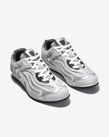 Giày sneaker thể thao phối lưới và da gây ấn tượng với thiết kế độc đáo, mang đậm tinh thần năng động và cá tính. Thân giày được cấu tạo từ lớp lưới thoáng khí phối cùng các mảng da mịn ôm gọn bàn chân, vừa đảm bảo độ thông thoáng khi vận động, vừa tăng độ bền và hỗ trợ định hình form giày. Phần họa tiết đan xen dạng sóng trên thân giày tạo điểm nhấn thị giác mạnh mẽ, đồng thời tăng độ linh hoạt cho tổng thể. Đệm đế thấp, nhẹ và êm giúp tăng cảm giác thoải mái khi di chuyển nhiều giờ liền.