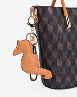 Túi Xách Tay thương hiệu Zuciani mang kiểu dáng độc đáo khi kết hợp phụ kiện khoá hình chú cá ngựa với màu sắc bắt mắt cùng phần quai xách cách điệu từ chất liệu da mềm mại.