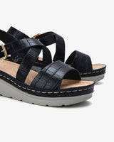Sandals cao gót nữ SRT04 với thiết kế đế hai lớp màu cùng đường chỉ nổi cá tính. Quai chéo ôm vòm chân với khoá kim loại dễ dàng điều chỉnh theo kích thước đôi chân. Trọng lượng siêu nhẹ mang lại sự thoải mái khi phải di chuyển cả ngày