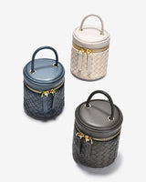 Túi xách mini đan vuông dáng trụ gây ấn tượng với phom dáng độc đáo, nhỏ gọn nhưng vẫn đảm bảo công năng chứa đồ cơ bản. Bề mặt túi được xử lý tỉ mỉ bằng kỹ thuật đan ô vuông thủ công, mang lại cảm giác sang trọng, cá tính. Phần khóa kéo kim loại tông vàng nổi bật giúp tăng độ sáng cho tổng thể. Đặc biệt, túi được thiết kế với 1 dây đeo có thể điều chỉnh linh hoạt, cho phép người dùng tự do biến tấu giữa đeo chéo, đeo vai hoặc xách tay nhẹ nhàng đáp ứng đa dạng phong cách và nhu cầu sử dụng.