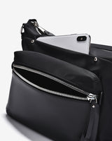 Túi đeo chéo làm từ chất liệu nilon (polyester) bền nhẹ, chống thấm tốt, phù hợp cho di chuyển hằng ngày lẫn du lịch. Thiết kế nổi bật với túi trước phối da tạo điểm nhấn hiện đại. Thiết kế nhiều ngăn tiện dụng, gồm ngăn chính rộng rãi, túi khóa kéo mặt trước và các ngăn phụ bên trong, giúp phân loại vật dụng cá nhân một cách gọn gàng.