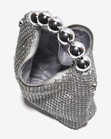 Túi đeo chéo lấp lánh đi tiệc có thiết kế phủ đá lấp lánh toàn thân, nổi bật với quai xách dạng chuỗi bi kim loại bóng, tạo điểm nhấn sang trọng và thời thượng. Phom túi nhỏ gọn, phù hợp đi tiệc, giúp hoàn thiện phong cách như một món trang sức nổi bật.