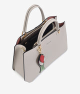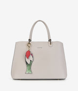 Túi xách tay form Satchel cổ điển tối giản được cắt may trên nền da thật có vân tự nhiên cao cấp. Túi đính kèm phụ kiện Key chain bằng da với tạo hình Cá cách điệu mang lại nét trẻ trung hiện đại. Quai xách thanh mảnh là điểm nhấn cho các cô nàng yêu thích nét nữ tính dịu dàng.