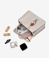 Túi xách tay form Satchel cổ điển tối giản được cắt may trên nền da thật có vân tự nhiên cao cấp. Túi đính kèm phụ kiện Key chain bằng da với tạo hình Cá cách điệu mang lại nét trẻ trung hiện đại. Quai xách thanh mảnh là điểm nhấn cho các cô nàng yêu thích nét nữ tính dịu dàng.