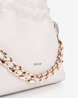 Túi xách Zuciani Glam Up là một biểu tượng sự sang trọng và đẳng cấp. Được chế tác từ chất liệu da cao cấp chần chỉ, túi mang đến cảm giác mềm mại và vẻ ngoài lộng lẫy. Túi được trang bị dây xách tay xích mạ vàng, tạo ra một điểm nhấn đặc biệt và tinh tế. Dây xách tay này không chỉ thể hiện sự sang trọng, mà còn mang lại sự chắc chắn. Túi còn đi kèm với dây đeo chéo rút hiện đại và đầy ấn tượng cho phép điều chỉnh chiều dài một cách linh hoạt và mang túi theo cách phù hợp với phong cách của các chị