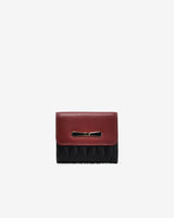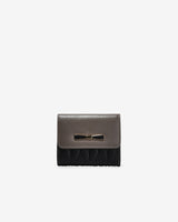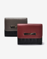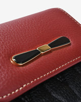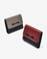 Mẫu ví mini sở hữu kiểu dáng vuông vức hiện đại, nổi bật với phần nắp phối màu ấn tượng và chi tiết nơ ánh kim tinh tế. Thân ví xử lý vân nổi tạo hiệu ứng bề mặt độc đáo, tăng thêm cảm giác chắc chắn khi cầm. Thiết kế nhỏ gọn nhưng vẫn đảm bảo công năng, phù hợp cho các buổi gặp gỡ nhẹ nhàng hoặc sử dụng hằng ngày.