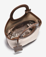 Túi Xách Tay Nữ Zucia gây ấn tượng mạnh mẽ với thiết kế tay cầm tròn độc đáo, mang đến nét hiện đại và mới lạ. Phom dáng gọn gàng, phối màu nâu tinh tế và trắng thanh lịch, dễ dàng kết hợp cùng nhiều outfit khác nhau. Quai xách tròn được bọc da chắc chắn, tạo điểm nhấn nổi bật đồng thời mang lại sự thoải mái khi cầm nắm. Kích thước vừa vặn, đủ chứa điện thoại, ví tiền và vật dụng cần thiết, lý tưởng cho cả công việc lẫn những buổi hẹn hò sang trọng.