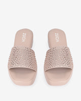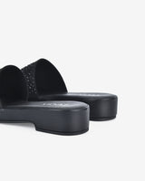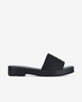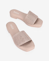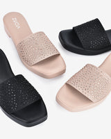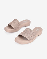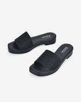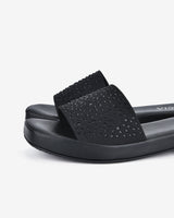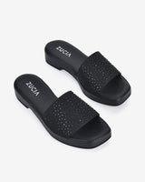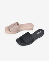Dép nữ Zucia với kiểu dáng thời trang quai ngang vải đan co giãn được đính hạt mang lại cảm giác thoải mái êm chân khi di chuyển, phù hợp với mọi độ tuổi.