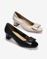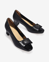 Giày Cao Gót Zuciani sở hữu thiết kế mũi vuông phối da bóng nổi bật, tạo điểm nhấn hiện đại và thanh lịch. Nơ bản to đi kèm khoá kim loại cách điệu mang lại vẻ sang trọng tinh tế. Gót trụ vát nhẹ giúp tôn dáng mà vẫn giữ được sự ổn định. Lót trong mềm mại nâng niu bàn chân, lý tưởng cho môi trường công sở và những dịp cần chỉn chu.