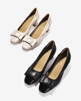 Giày Cao Gót Zuciani Mũi Phối Da Bóng Đính Khoá Nơ - /